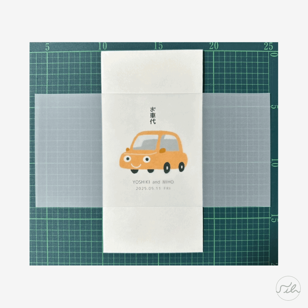 1.帯を封筒の上下中央に合わせます