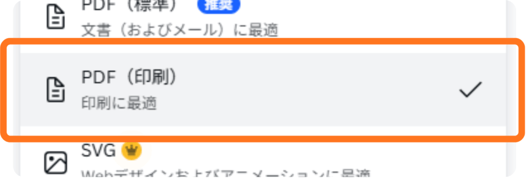 3.「PDF(印刷)」を選択します