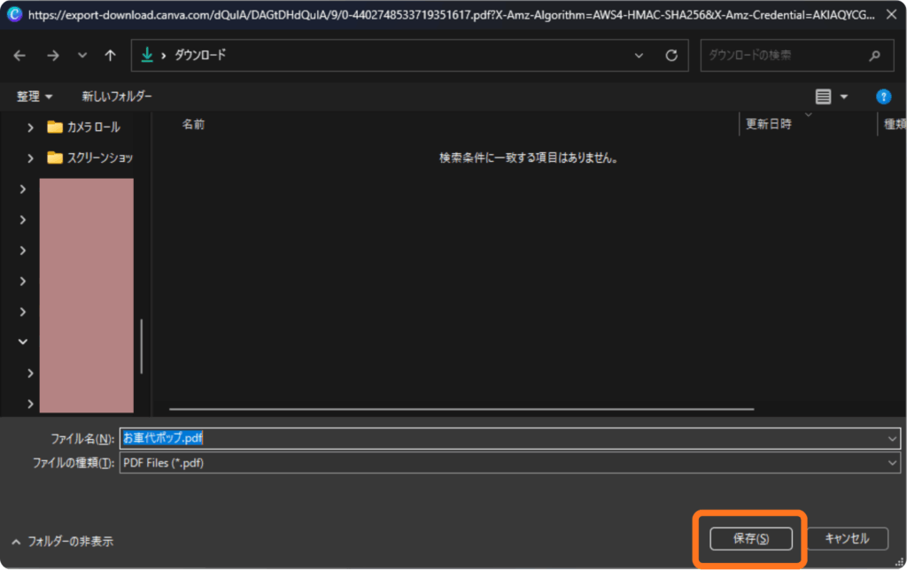 5.保存する場所を選択し、「保存」ボタンをクリックで完了です