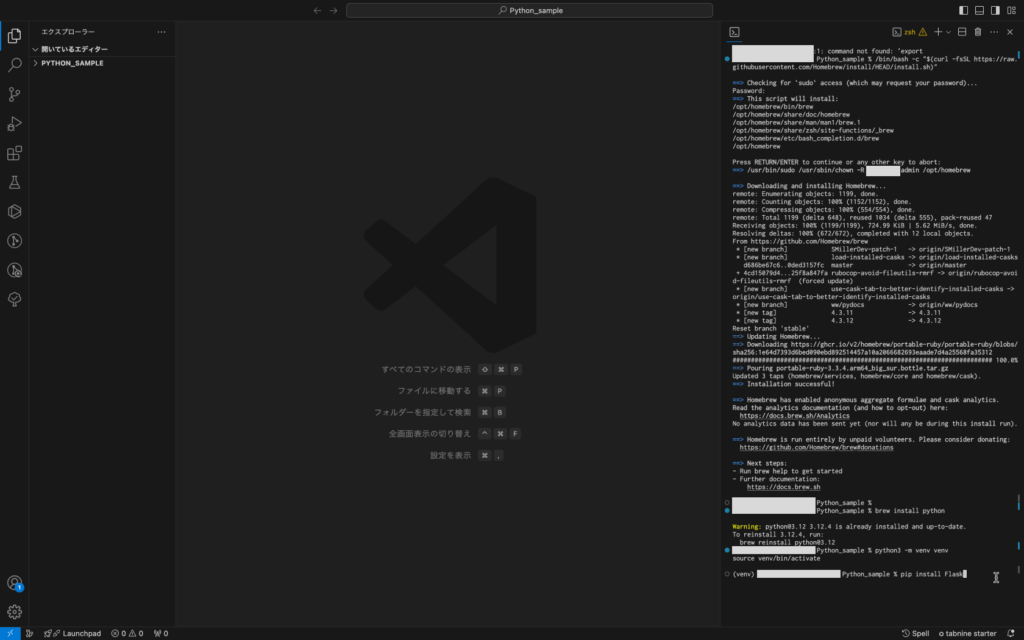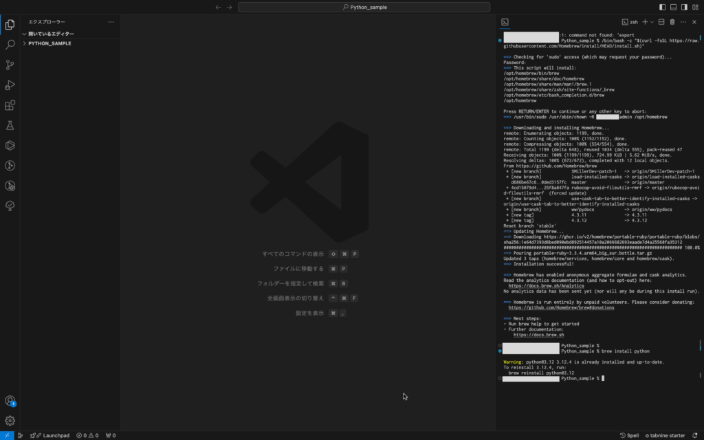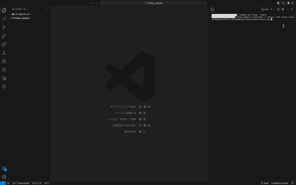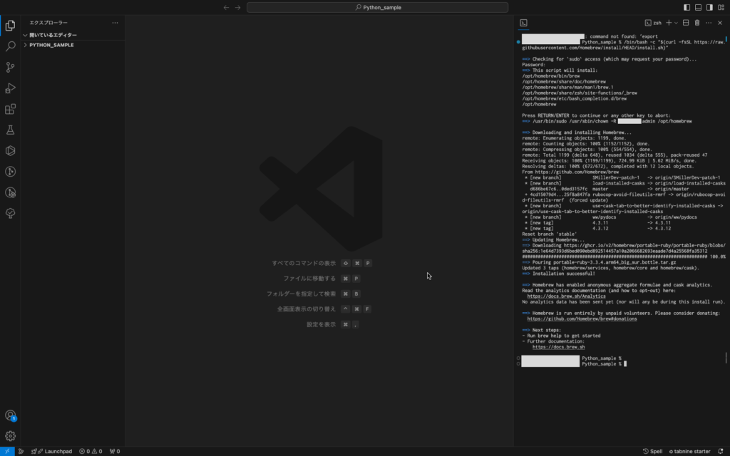 ターミナルを開き、以下のコマンドを実行してHomebrewをインストールします。