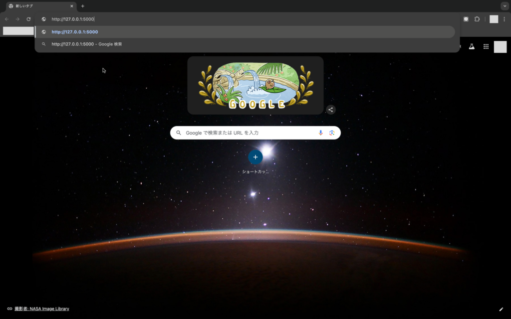 ⑧ブラウザでhttp://127.0.0.1:5000にアクセスします。