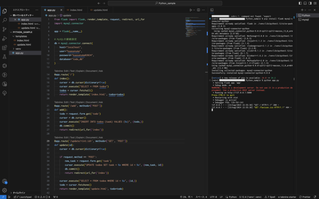FlaskとmysqlとPythonを繋げるモジュールをインストールします。