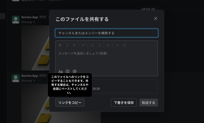 リンクをコピーしたら、任意のチャンネルにリンクを貼り付け、投稿します。