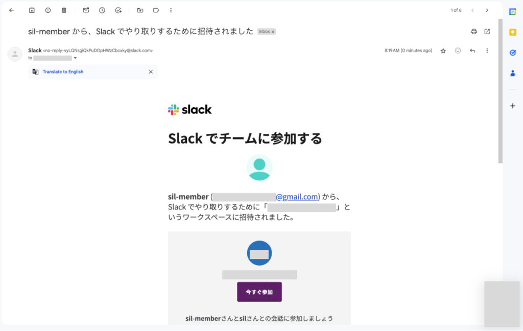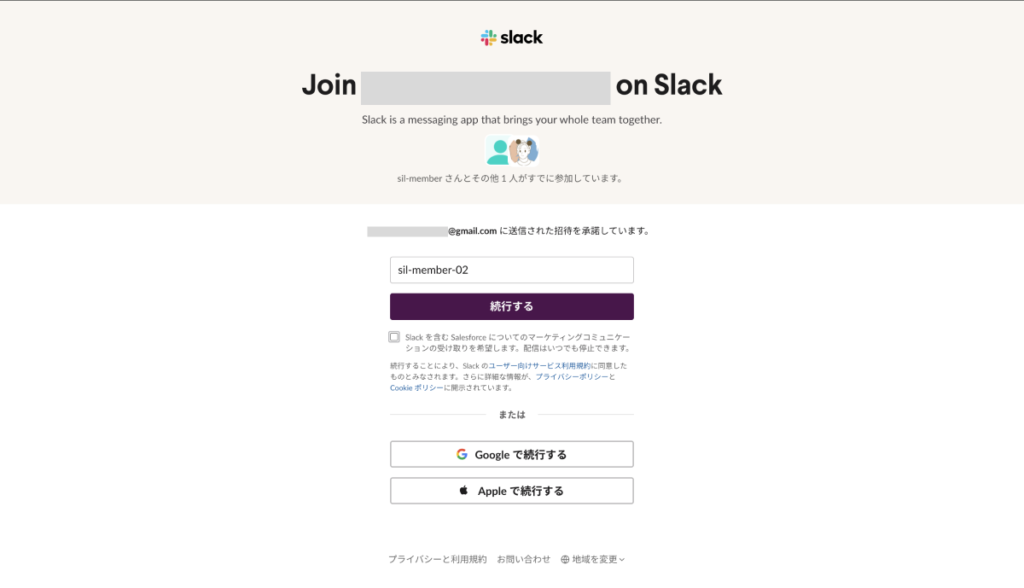 ドメインを変更前に送信された招待メールからSlackに参加できることを確認できました。