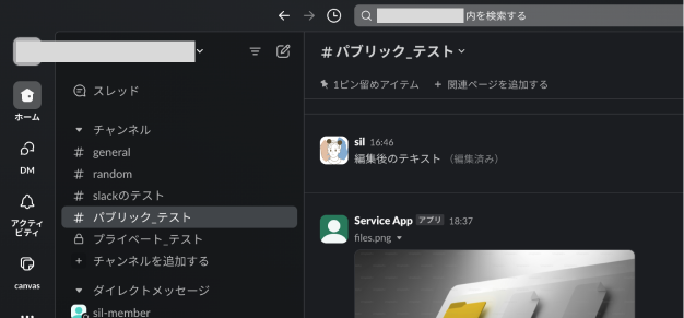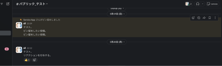 確認すると、共有されているチャンネルに、元の投稿をしたチャンネルとコピーしたリンクを投稿したチャンネルが表示されていることを確認できます。