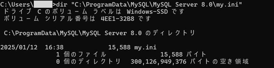 コマンドを実行:notepad "C:\ProgramData\MySQL\MySQL Server 8.0\my.ini" - ファイル内の