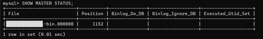 | Executed_Gtid_Set | GTID (Global Transaction ID) の情報(空白なのでGTIDは未使用) |