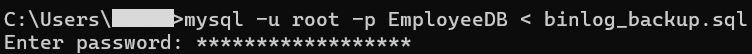 mysql -u root -p EmployeeDB < binlog_backup.sql