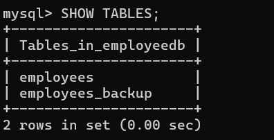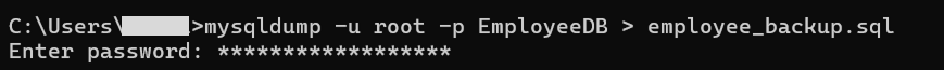 mysqldump -u root -p EmployeeDB > employee_backup.sql