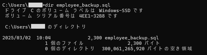 ls -lh | grep employee_backup.sql # Linux/macOS