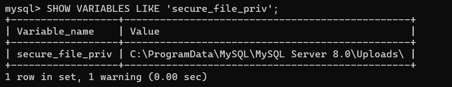 SHOW VARIABLES LIKE 'secure_file_priv';