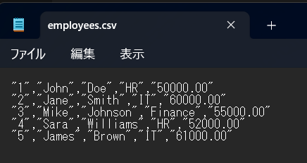 これにより、「Employees」テーブルのデータがCSVファイルとしてエクスポートされます。