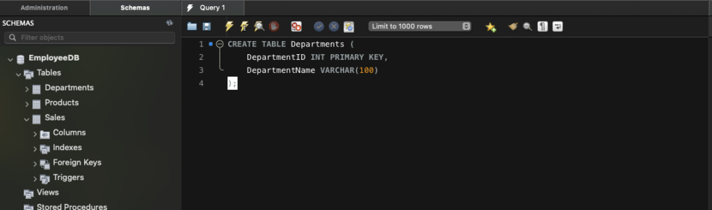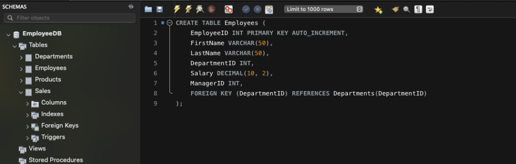 EmployeeID INT PRIMARY KEY AUTO_INCREMENT,