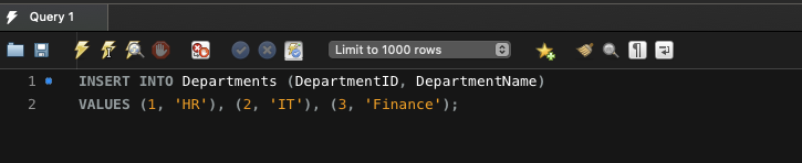 VALUES (1, 'HR'), (2, 'IT'), (3, 'Finance');